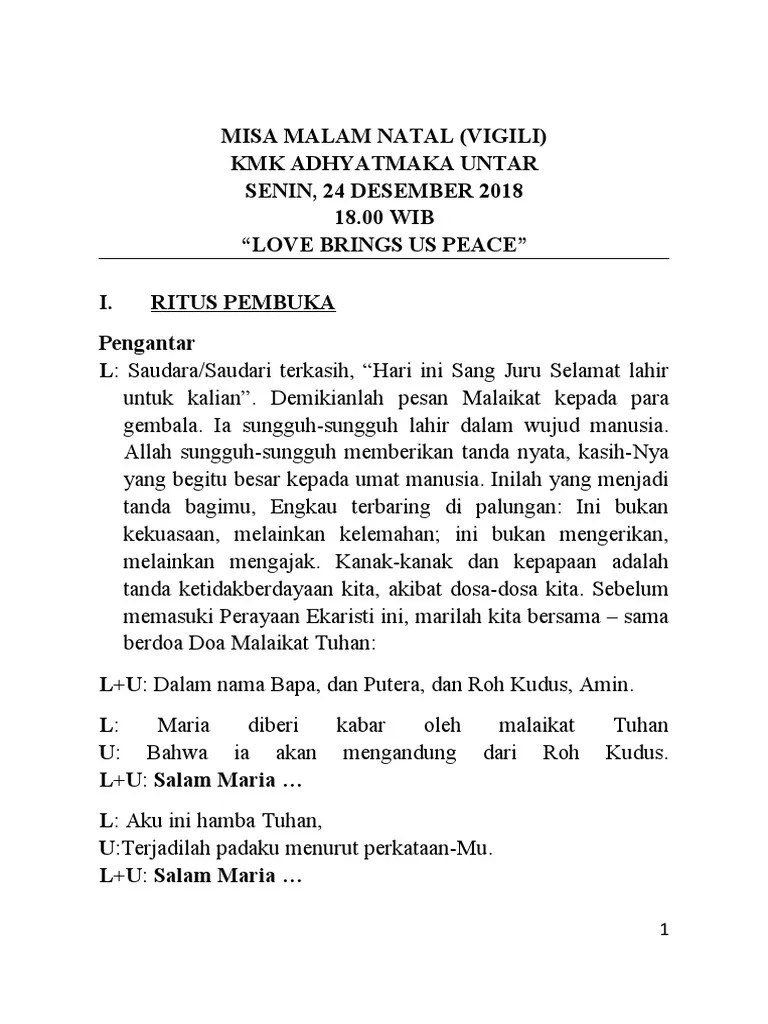 Ibadat Perayaan Natal Lingkungan 3 from imgv2-1-f.scribdassets.com Berbeda dengan saya saat pertama kali diberikan kesempatan untuk doa pembukaan di ibadah rumah tangga serasa kaget dan binggung. Contoh doa penutup ibadah kristen di gereja mastimon com. J amin p natal telah tiba, hari kelahiran juruslamat kita tuhan yesus kristus.panjatkanlah syukur kepadanya, karena kasihnya yang nyata pada kita. Doa yang di ajukan hanyalah seputar ibadah jika seorang pendeta sudah pasti terbiasa berdoa di ibadah raya atau ibadah umum dan juga doa pembukaan saat perayaan natal dan paskah. Dalam setiap ibadah sebelum memasuki hati pemujaan mendengar firman tuh. Hadirin yang terhormat, perayaan hari ibu akan berlangsung semalam. Didalam nama tuhan yesus kami akhiri ibadah perayaan natal malam ini kedalam tanganmu, haleluya amin. itulah beberapa contoh doa saat perayaan natal. Teks doa ringkas pembukaan majlis 1 hadirin yang terhormat, perayaan hari ibu akan berlangsung semalam doa pembukaan sosialisasi gratifikasifull description.